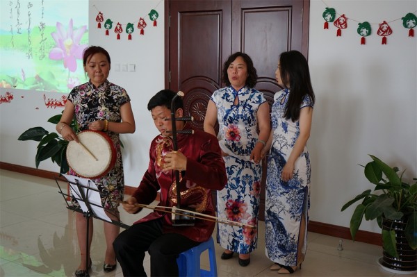烟台爱华双语学校幼儿园张连萍园长等演唱爱国诗人屈原的《橘颂》,王斌礼校长等的二胡伴奏,博得了现场老师们的阵阵喝彩。