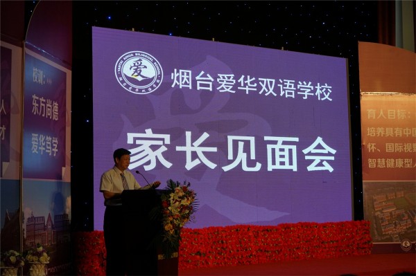烟台爱华双语学校王斌礼副校长主持本次家长见面会