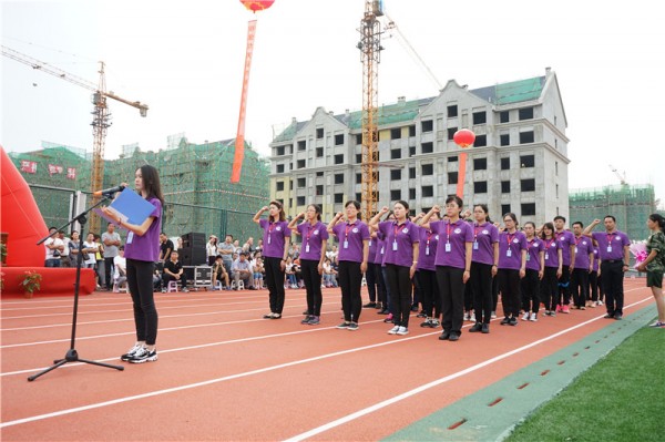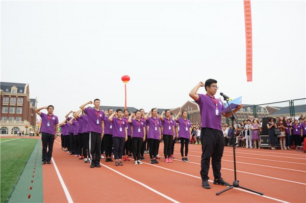 我们宣誓:为培养具有中国情怀,国际视野的智慧健康型人才而努力奋斗,为把烟台爱华双语学校办成百年名校,我愿奉献全部力量!