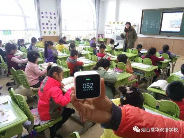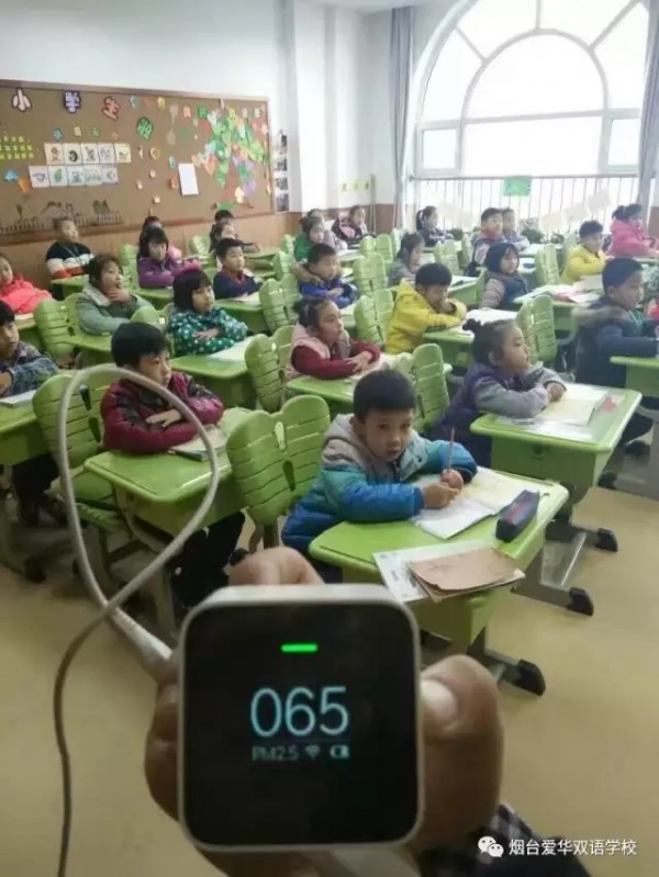 本周,关心孩子们健康的爱华老师也对学校室内外的空气质量进行了监测: