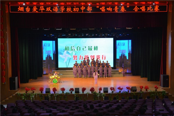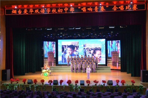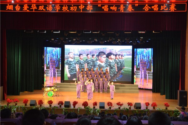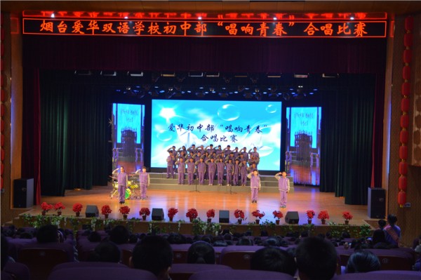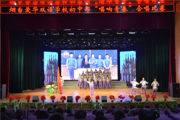 4月1日,烟台爱华双语学校初中部在大剧院举行了“唱响青春”合唱比赛。初中部全体学生登台献唱,充分展现了我们爱华学子的活力与风采。