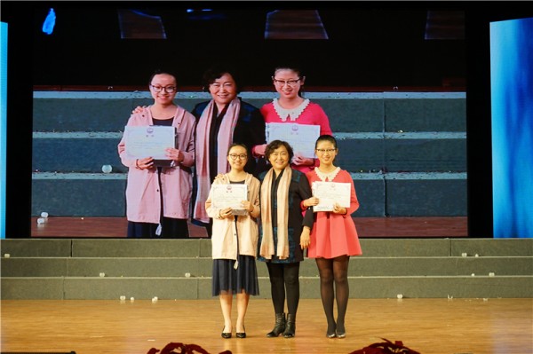 高中部陈云珠副校长、修荣主任、孙同虎主任为获得三等奖的同学颁奖