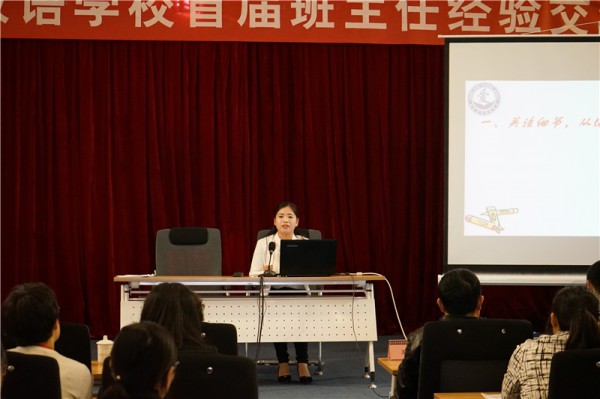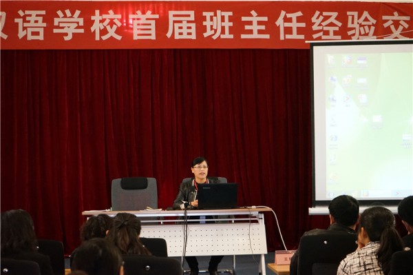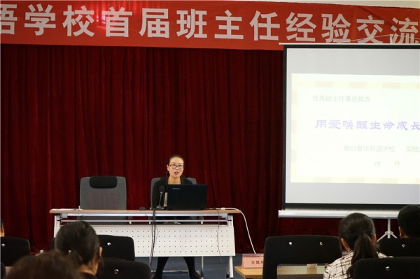 交流大会由卫艳君主任主持,来自幼儿部、小学部、初中部、高中部和实验部的8位班主任先后现场登台交流。他们中,既有从事多年班主任工作的老班主任分享的巧妙机智、令人拍案叫绝的班级管理和学生教育经验,也有刚刚走上讲台的青年班主任讲述的新颖独特、热情满怀的问题学生矫正小妙招。