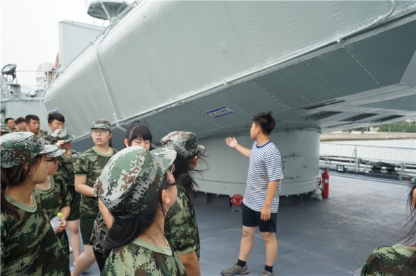 同学们参观海军航院,