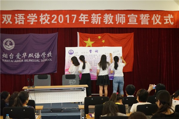烟台爱华双语学校2017年新教师完成岗前培训宣誓上岗