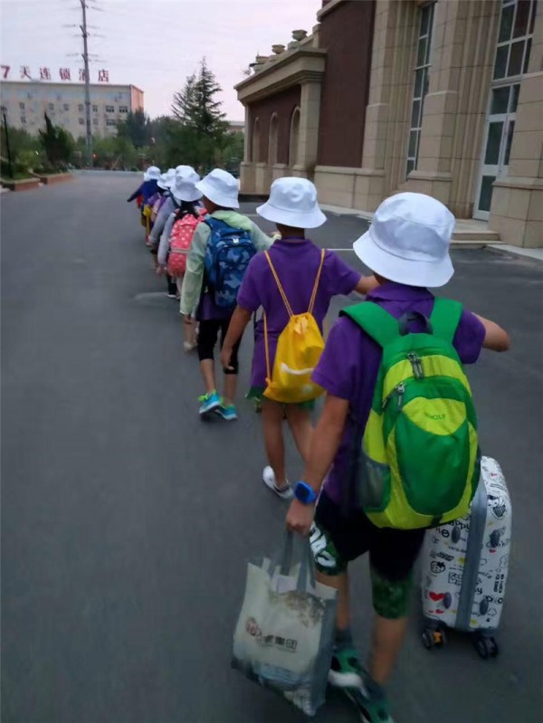 迎着朝霞排着整齐的队伍,孩子们踏上了与外籍教师共同参与的北京游学之路,延续英语学习,加深与传统历史、文化的亲近感。