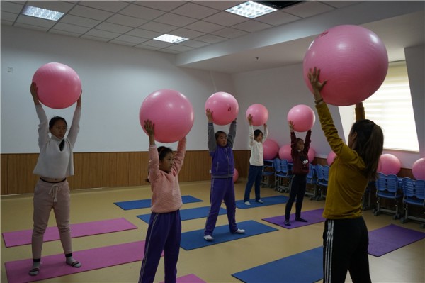 轻松的瑜伽体位让同学们认真地关注自己的呼吸,在一呼一吸之间释放正能量。