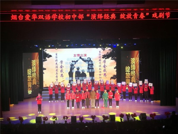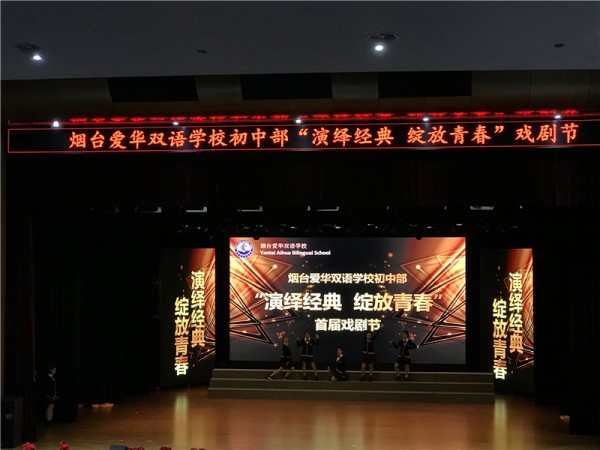 12月10日,烟台爱华双语学校初中部“演绎经典 绽放青春”首届双语戏剧节精彩上演。