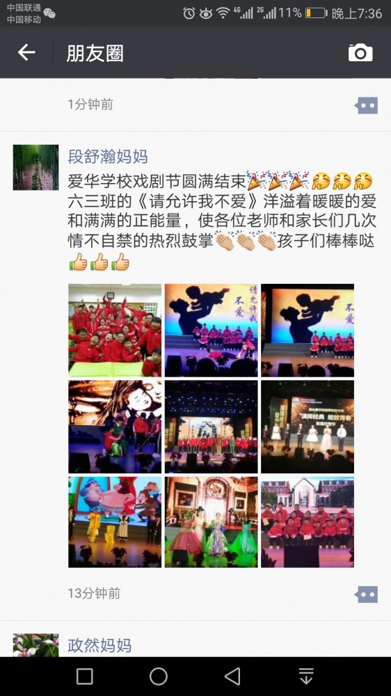 初中部孩子家长对本次双语戏剧节给予高度评价