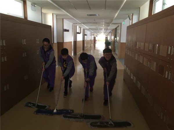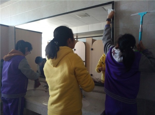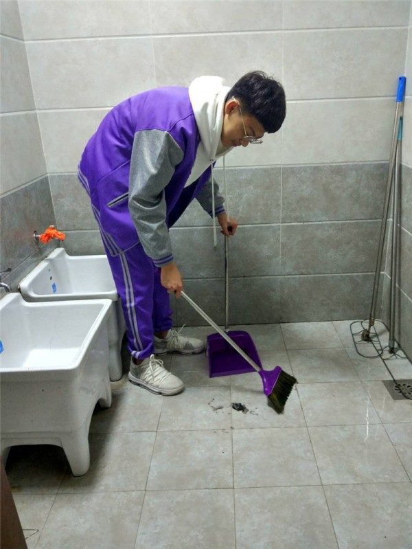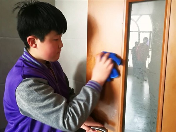 “干了一中午,也找到了一些有趣且实用的打扫方法,心里也为自己的收获暗自窃喜。远望那挥洒汗水的地方,内心十分高兴,还有点儿小小的自豪感……”(七年级 于璐)