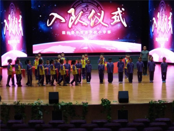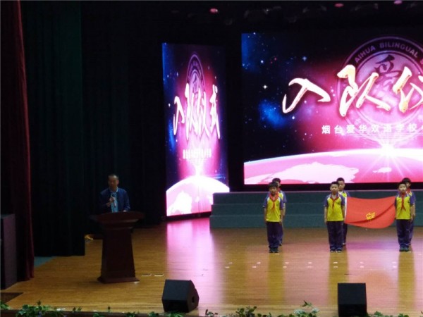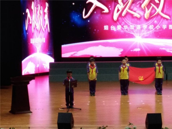 6月8日,烟台爱华双语学校小学部的师生们相聚在一起,举行庄严的“我入队 我快乐 我自豪”少先队入队仪式。爱华小学部少先大队部又迎来了新鲜的血液,一批新队员光荣地加入了中国少年先锋队,成为少先队组织的一员。