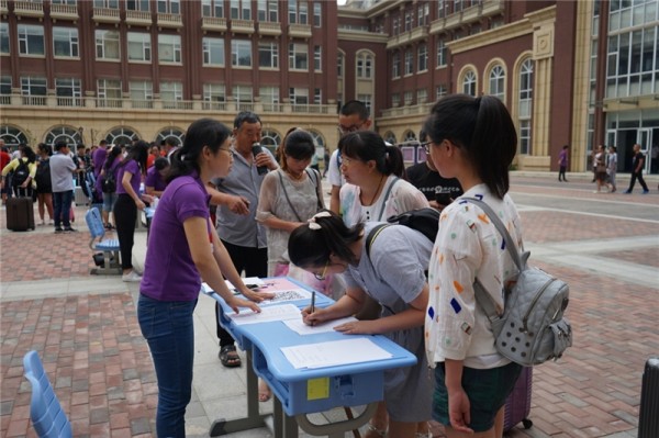 沐浴着夏日的晨光,和着青春的节拍。新生们来校报到。从此,成为了一名光荣的爱华人!