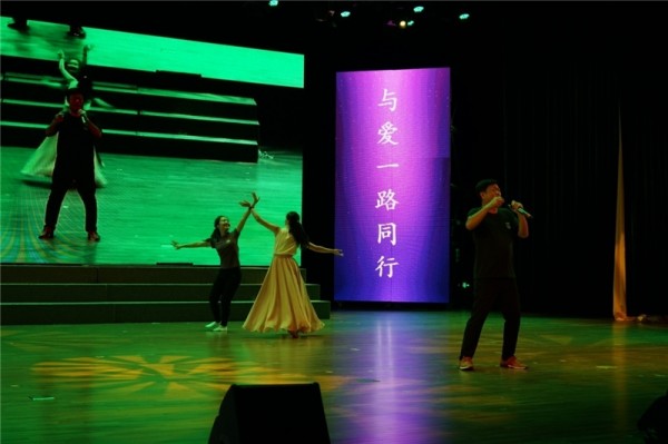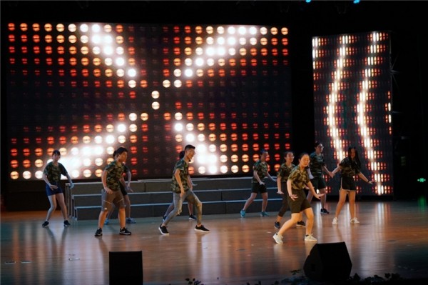 迎新晚会上,教师和同学们载歌载舞,空气中都弥漫着开心的味道