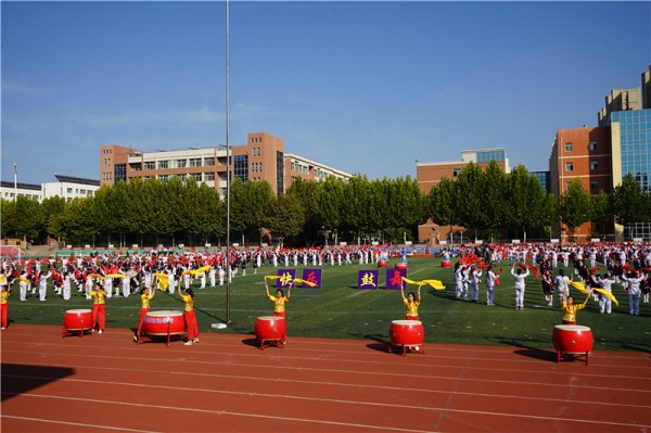 10月13日上午,烟台开发区第十六届运动会在高级中学体育场隆重举行。在开幕式上,700名爱华学子表演的大型团体操《快乐鼓舞》精彩亮相、震撼全场!