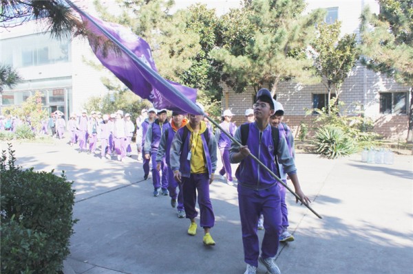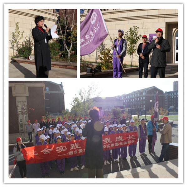 清晨,实验部初中全体师生在学部门口集合。总校谢元会副校长向学生代表米凯文授予“烟台爱华双语学校”校旗,实验部卫艳君校长发表了慷慨激昂的动员讲话。同学们列队整齐,聆听认真,整装待发。