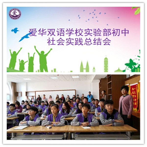 回校后,学部召开了“爱华双语学校实验部初中生社会实践总结会”。仲维芳主任对本次实践活动进行了总结,鼓励同学们发奋努力,追求新知,把个人的学习、成长同社会、同国家的发展融为一体。宋卫涛主任对在社会实践活动中表现优秀的同学提出了表扬,号召同学们以他们为榜样,把“美德与荣誉高于一切”的爱华校训落到实处。
