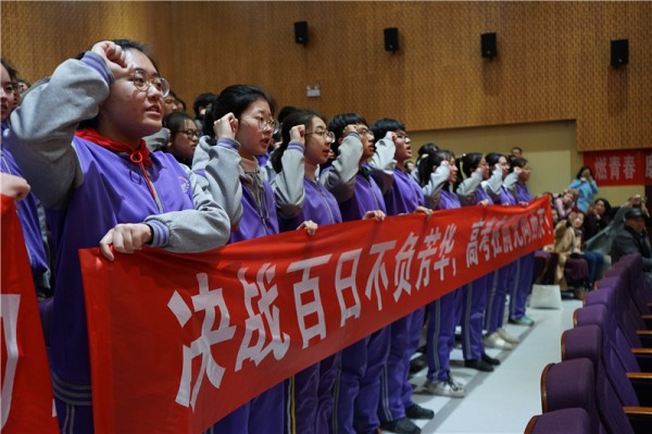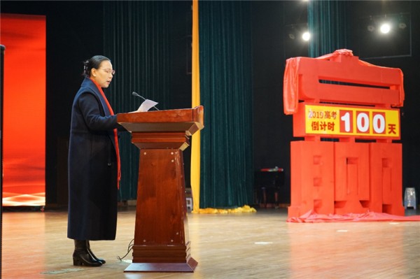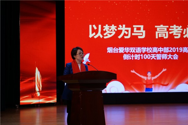 大会上,高中部校长李雪梅校长发表了热情洋溢、激励人心的讲话。李校长的发言既有温度,又有力度,既有殷切的期望,又有感情的嘱托,意味深长,直抵心灵。她希望同学们以对自己一生负责的态度,以只争朝夕的精神,迎接挑战的到来。一百天可以突飞猛进,一百天可以创造奇迹。