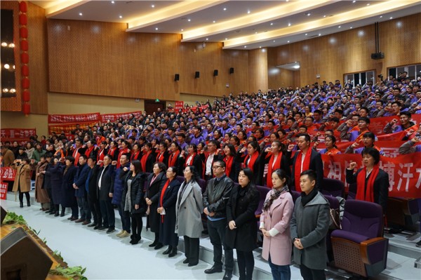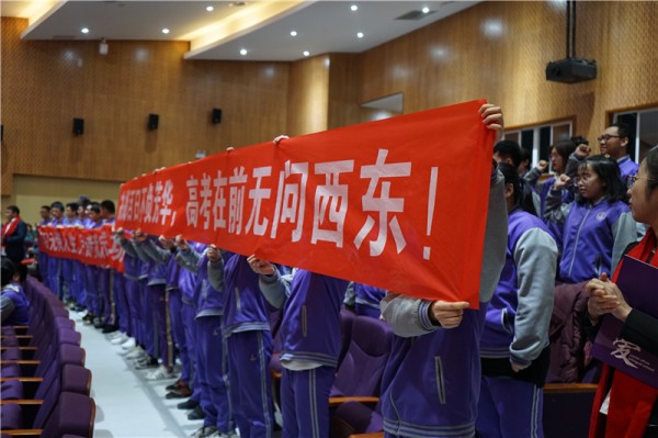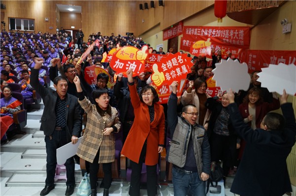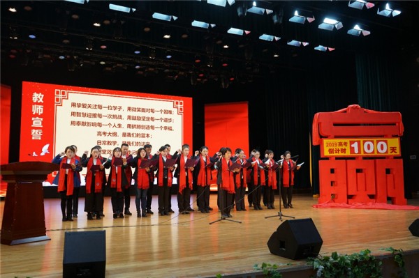 在修容主任的带领下,全体高三教师做出了郑重承诺:“用爱关注每一位学子,用微笑面对每一个困难;用智慧迎接每一次挑战,用鼓励坚定每一个进步;用奉献影响每一个人生,用拼搏创造每一个幸福。”“我们,为你们保驾护航,我们为你们摇旗呐喊!我们,为你们同甘共苦,我们,与你们风雨同舟!”