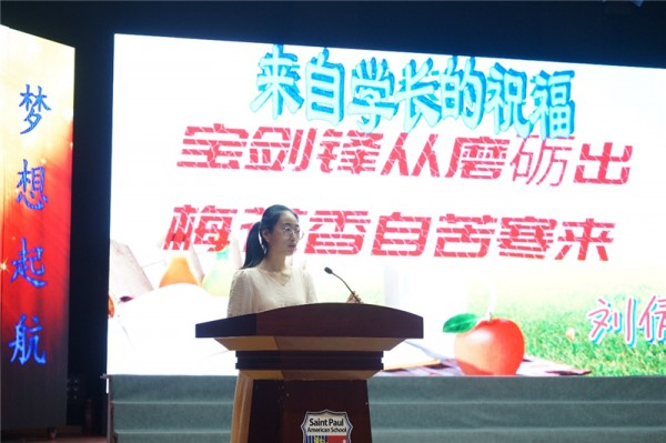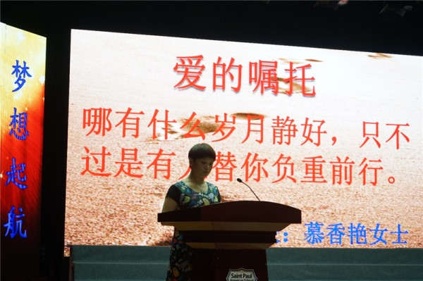 家长代表——2017级高三一班李想同学的母亲慕香艳女士对各位同学致以爱的嘱托。从李想妈妈的嘱托中不难看出家长们的拳拳深情。爱华学子知父母心:家,是你坚实的后盾,尽力拼搏吧!