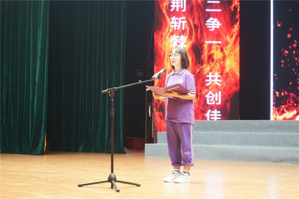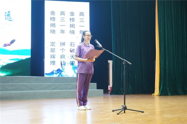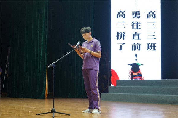 大会上,高三各班学生代表也上台发言,说出2017级学子对高三的准备和誓言。学生代表慷慨激昂,向老师宣誓、向父母宣誓:在今后不足一年的时间里,以最大的决心、最强的信心、最扎实的努力对待每一天,为梦想而战,为高考而战。激昂的誓言,彰显了全体高三学子激情拼搏、实现梦想的士气与决心。