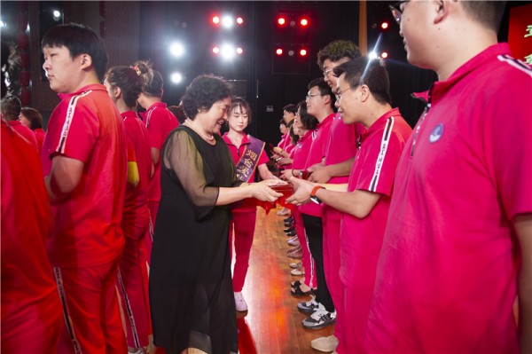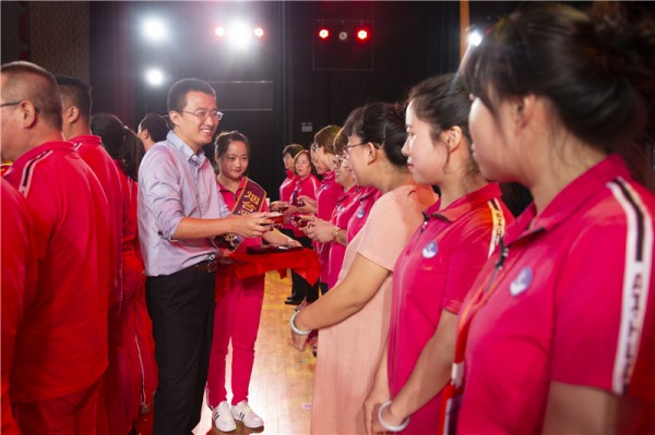 赵乔瑜董事长、孟令刚总经理、郭美娟总校长共同颁发忠诚员工奖