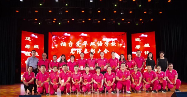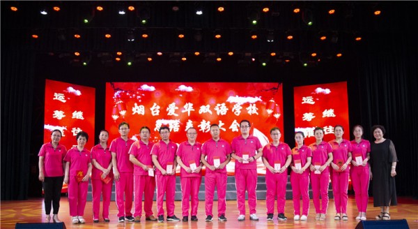 8月25日,全体爱华教职员工在学校大剧院隆重召开烟台爱华双语学校建校三年总结表彰大会,设置忠诚员工奖、优秀员工奖、卓越贡献奖、高考特殊贡献奖四项个人奖项以及优秀校长团队集体奖项,奖励和表彰肯扎根、能奋斗的爱华人。
