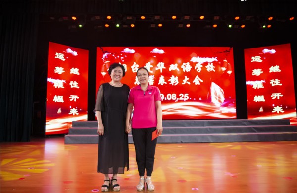 郭美娟总校长提名为高中部李雪梅校长颁发特殊贡献奖