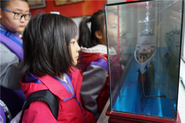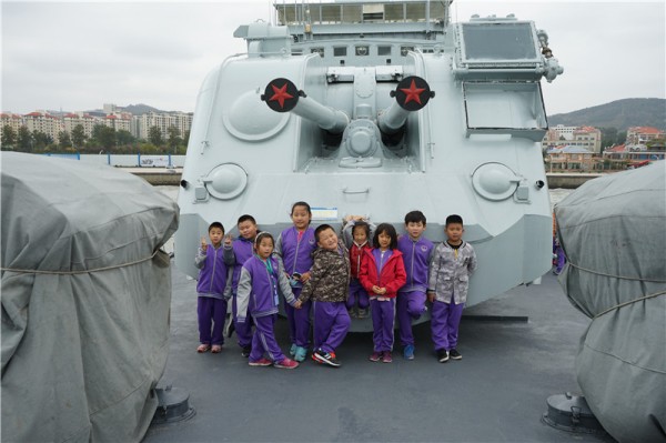 丰盛的午餐过后,同学们参观了中国海军的英雄舰——“合肥号”。这艘英雄舰在退役后,永久“定居”在烟台,成为烟台东部滨海岸线上的靓丽新风景。爱华学子登上军舰,一起回顾退役军舰的故事,感受中国海军的光辉历程,为将士们伟大的爱国精神所震撼,让同学们深刻领会到了海军战士“勇当先锋、敢于胜利”的海上先锋精神。