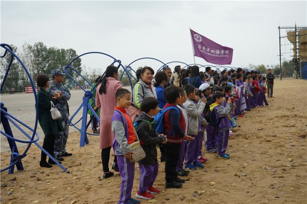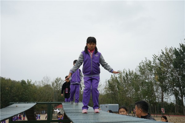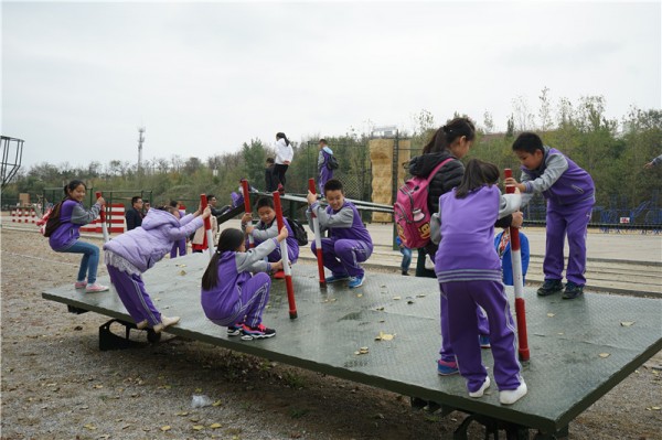 在训练场上,同学们近距离地观看战士们的一系列高难度训练表演。同学们亲身体验了软桥、摇摆铁桥、摇摆台等训练项目,深刻体会到了军人保家卫国的不易,增强了爱国主义情感。