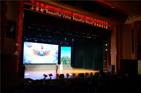在春日的暖阳里,伴随着校园里阵阵馥郁的玉兰幽香。4月14日下午,爱华双语学校大剧院里热闹非凡,因为在这里,小学部的孩子们迎来了他们的首届英语歌唱比赛。
