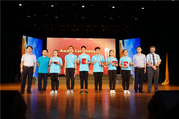 东方工业集团孟令刚副总经理、“华兹华斯”国际学校汤儒涵校长、爱华小学部袁波校长、华圣国际学校Dr. Andy为二等奖获得者李汶洁(高一八班)、王烽屹(高一七班)、崔佳铭(高一一班)、车允能(高一六班)、王雨晨(高一六班)、王彦杰(高一二班)颁奖