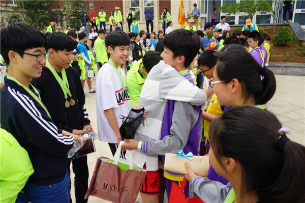6月7日上午,在学校大操场进行了中韩青少年体育交流活动,中韩青少年篮球队员和体育老师进行了巅峰对决。