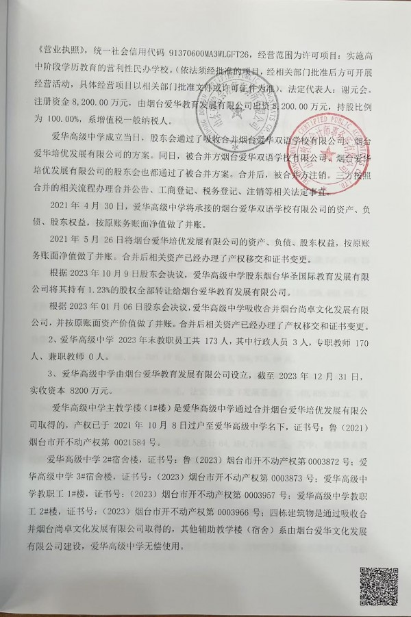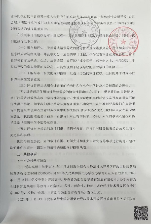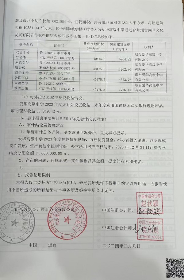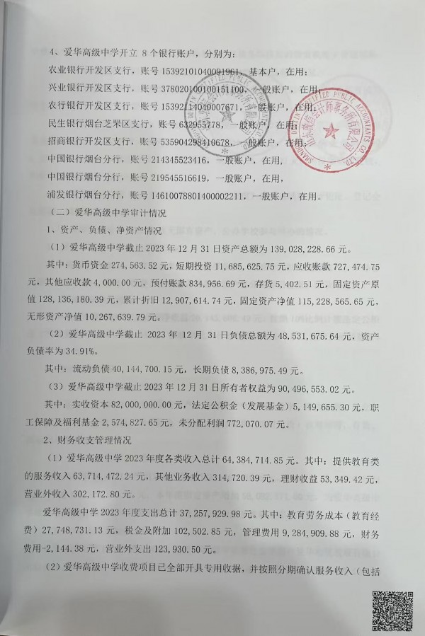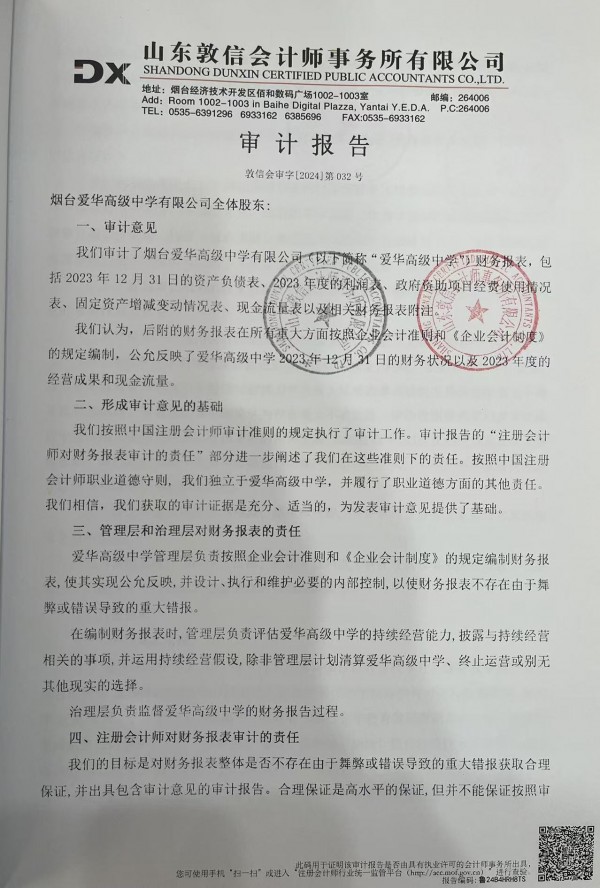 烟台爱华高级中学2024年审计报告