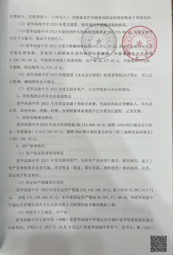 烟台爱华高级中学2023年审计报告